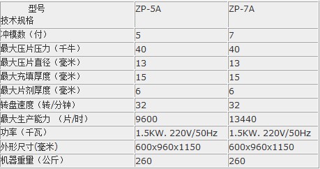 【ZP5A7A旋转式压片机规格】
