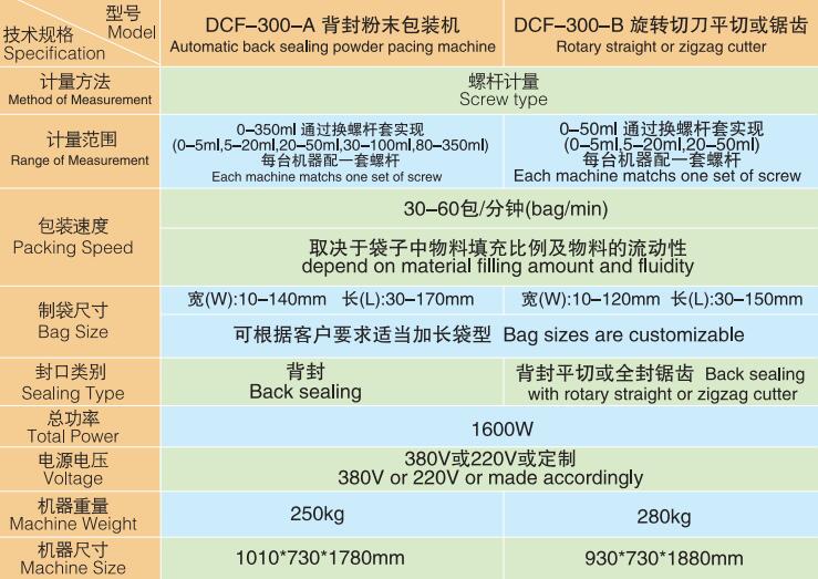 DCF-300-A/ DCF-300-B 背封粉末包装机